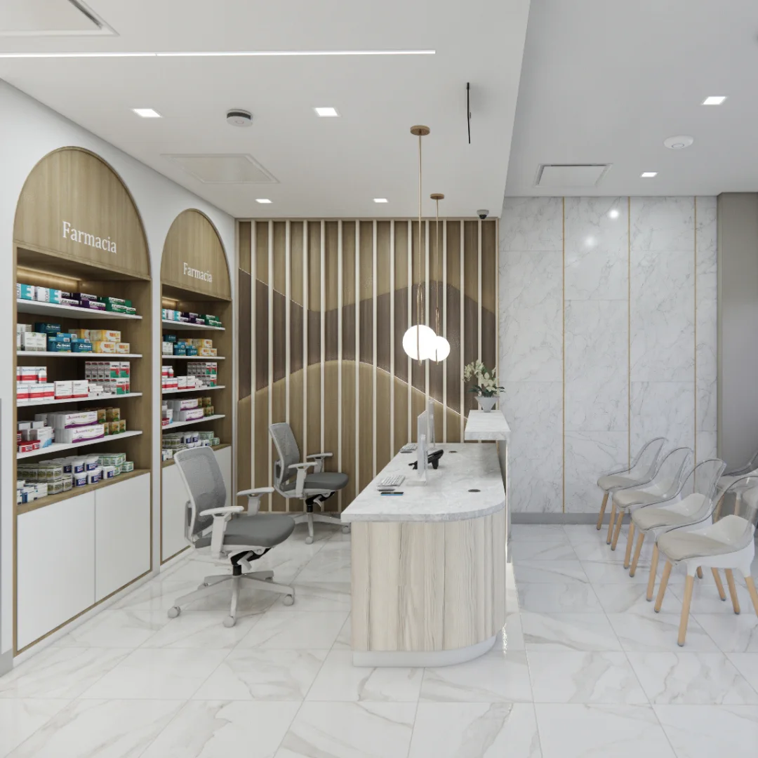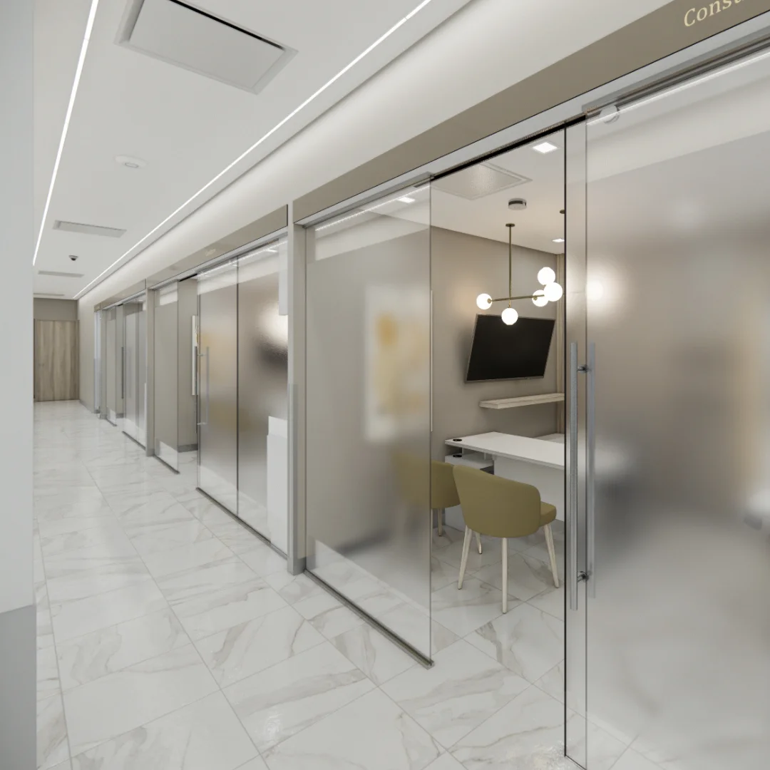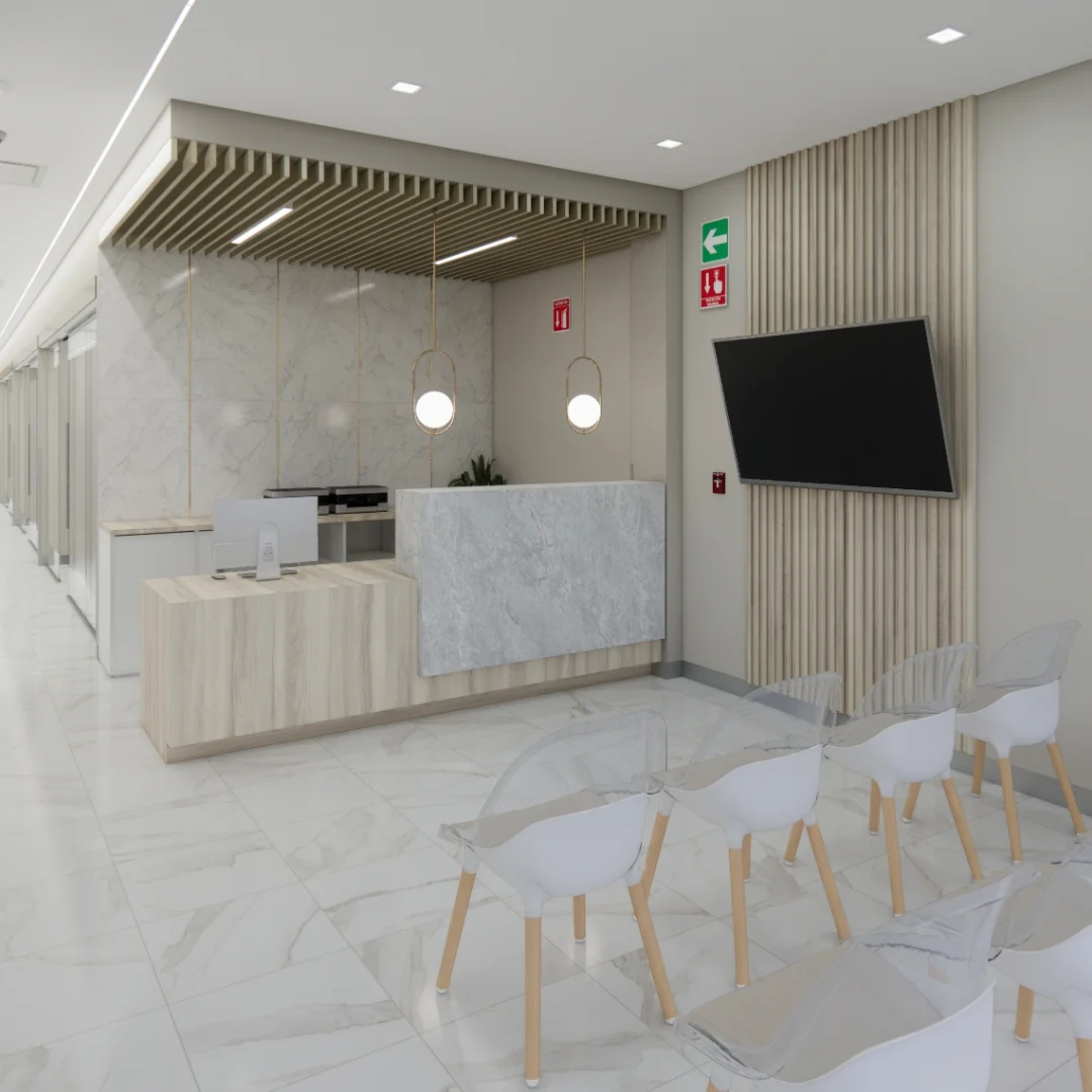 Ubicada en Monterrey, Nuevo León, esta clínica de 520 metros cuadrados cuenta con una imponente recepción y una elegante sala de espera, ambas revestidas de porcelanato y laminados, diseñadas para acoger a los pacientes en un entorno de confort, refinamiento y pulcritud.