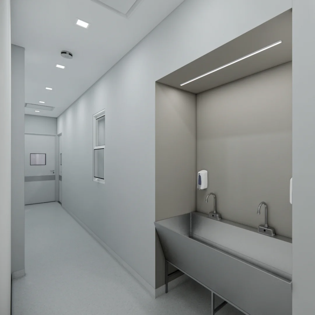 La unidad quirúrgica de la clínica ostenta acabados sanitarios premium que garantizan una máxima asepsia para sus actividades. Sus colores blancos y grises denotan modernidad, eficacia y profesionalidad, contrastando, pero también complementando, la calidez y comodidad de la sala de recuperación, espacio que favorece el reposo por medio de una atmósfera pacífica que inspira certeza y bienestar.