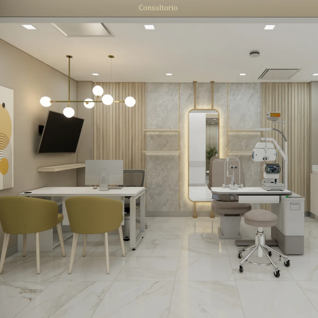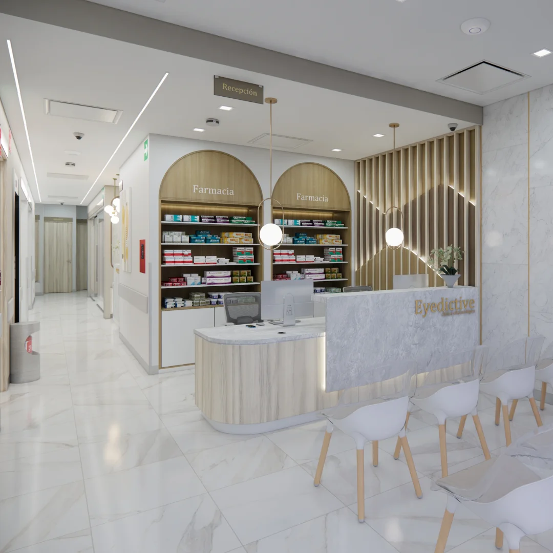 Eyedictive es una clínica oftalmológica que, gracias a su aprovechamiento inteligente del espacio y a sus acabados de alta gama, se convirtió —incluso antes de su construcción— en uno de los proyectos más emocionantes para la arquitectura hospitalaria en México durante 2024.