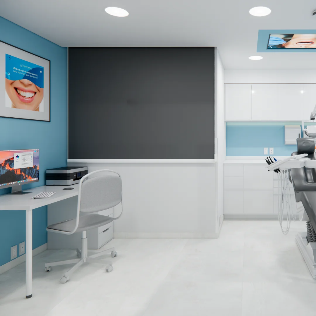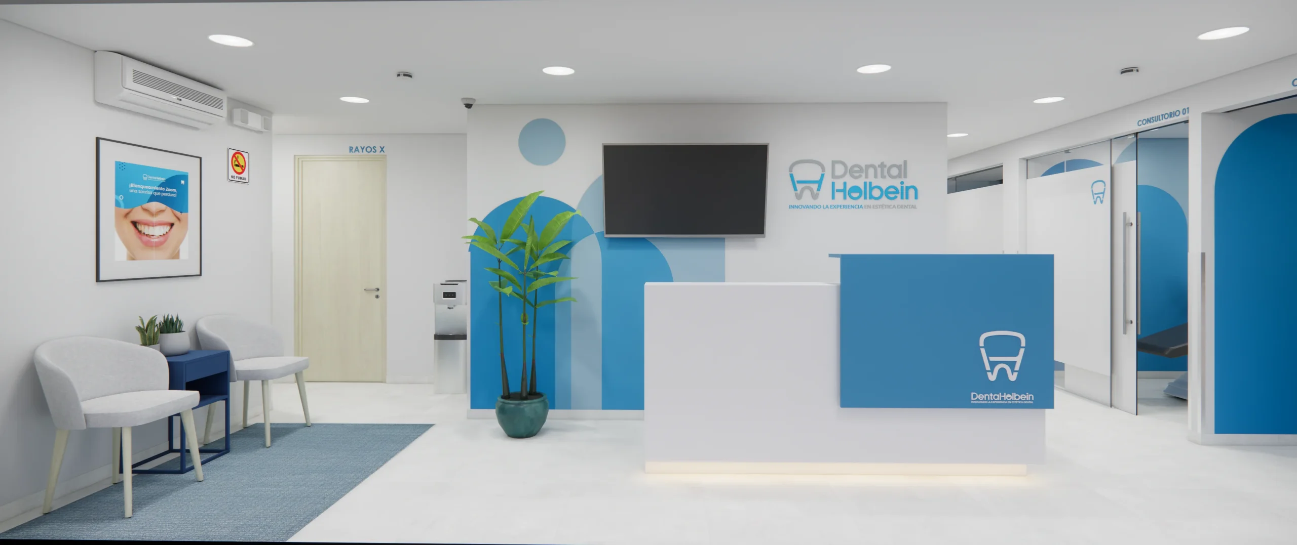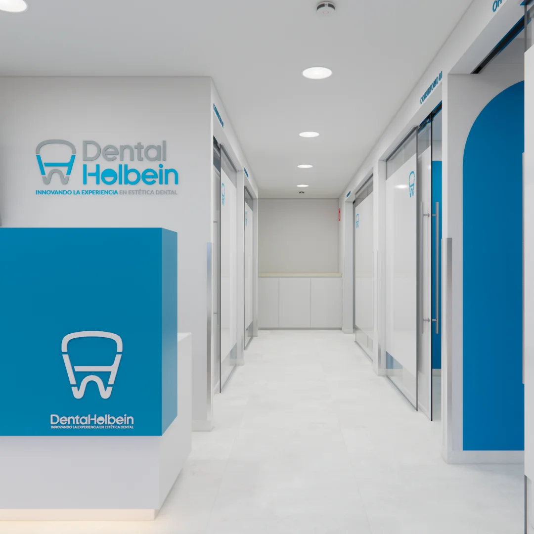 Para garantizar el servicio integral de Holbein, incorporamos a sus instalaciones tres consultorios, una oficina administrativa, descanso médico, una Central de Esterilización y Equipos (CEyE) y áreas de tomografía dental y rayos X. En cada uno de estos espacios colocamos luminarias tipo luna que irradian una intensa luz fría, diseñada para acentuar la vitalidad de su paleta de azules sandro, ágora y medalla.